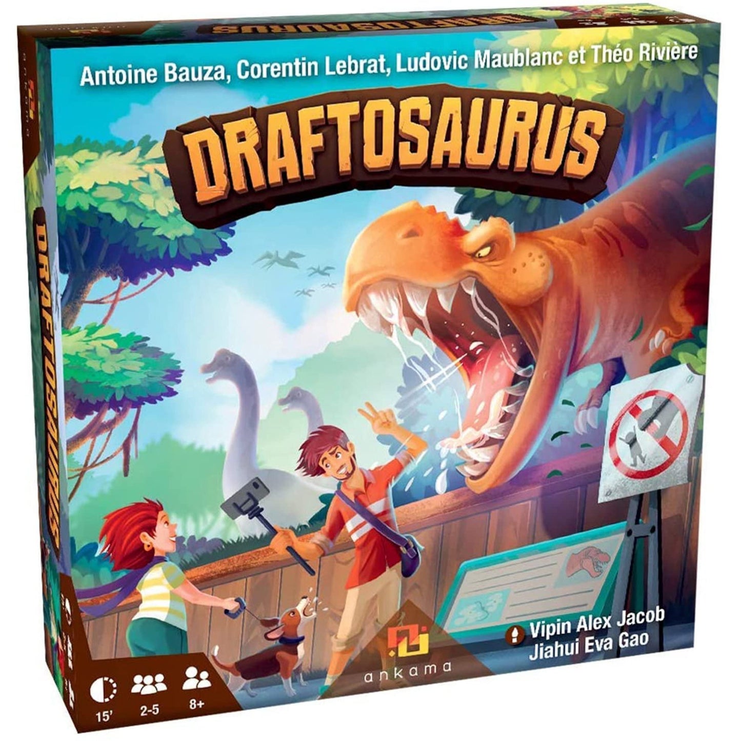 Your goal in Draftosaurus is to have the dino park most likely to attract visitors. To do so, you have to draft dino meeples and place them in pens that have some placement restrictions. Each turn, one of the players roll a die and this adds a constraint to which pens any other player can add their dinosaur.